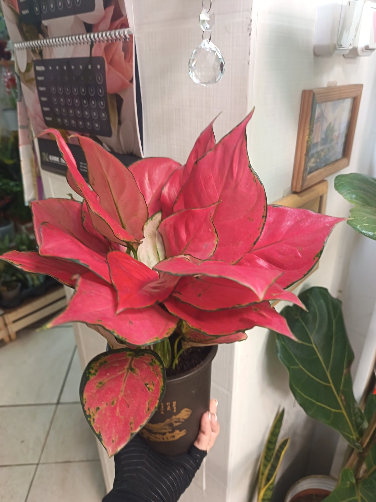 Аглаонема Red (также известна как китайский вечнозелёник) происходит из тропических лесов Таиланда, Индонезии и Малайзии, где растёт в тени под пологом больших деревьев. Растение ценится за компактный рост, яркую пёструю листву и способность мириться с недостатком света, поэтому её часто выбирают для офисов и северных окон. Удлинённые, заостренные листья имеют глубоко-зеленый фон с ярко-красными или розовыми прожилками и краями, создавая необычный контрастный рисунок. В природе растение образует красивые красные ягоды (редко в доме). Аглаонема выращивается в азиатских странах уже столетия как растение удачи и благополучия!