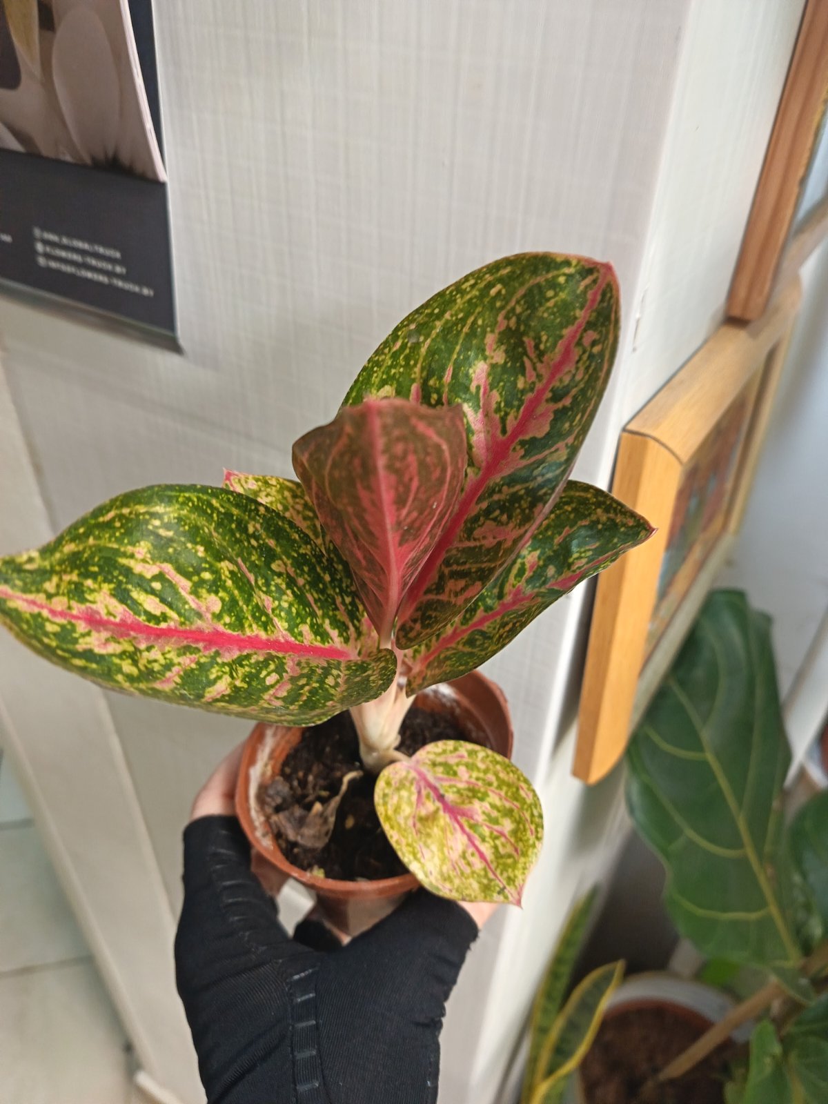 Аглаонема Spotted Star (Aglaonema ‘Spotted Star’), также известная как Chinese Evergreen- это компактное декоративное растение из тропических лесов Юго-Восточной Азии. Растение прославилось благодаря потрясающему мраморному рисунку листьев: ярко-розовые, красные и зелёные пятна в брызгово-пятнистом узоре создают впечатление, что каждый лист нарисован вручную художником. Название происходит от греческого «aglos» (яркий) и «nema» (нить), что отражает красоту варьированных узоров на листьях. Растение ценится за простоту ухода, компактный размер и яркую листву, идеально подходит для офисов и квартир с недостатком света. В азиатских культурах считается символом удачи и благополучия!